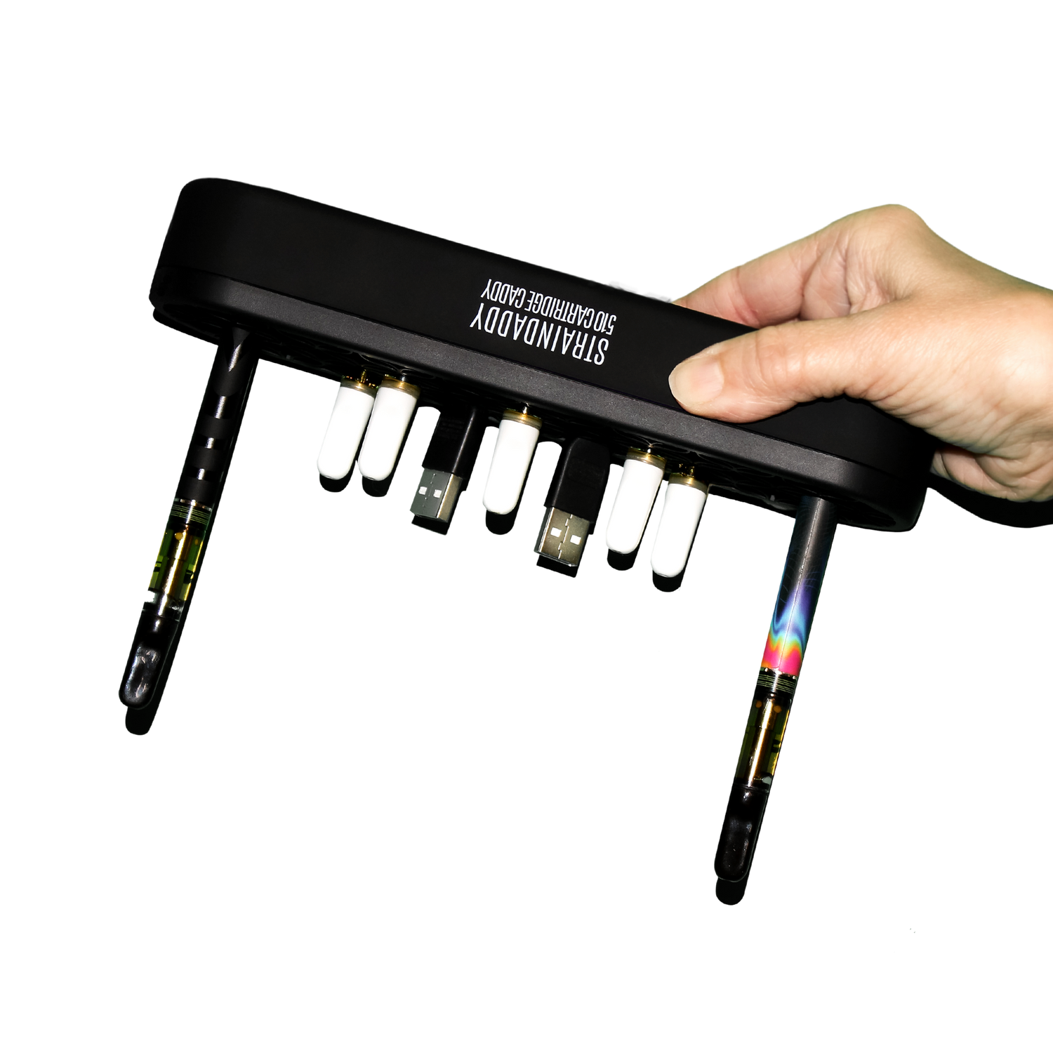 THE STRAINDADDY 510 CARTRIDGE CADDY WAS CREATED WITH ONE SIMPLE MISSION: TO BE THE AFFORDABLE, GO-TO CANNABIS ACCESSORY TO MAKE STORING YOUR STASH AS SIMPLE AS VAPING IT. INDEPENDENTLY OWNED AND OPERATED, WE AT STRAINDADDY PRIDE OURSELVES ON AFFORDABILITY AND PERSONABLE CUSTOMER SERVICE AS PAINLESS AS USING OUR PRODUCT. WE AIM TO SERVE THE CANNABIS COMMUNITY WITH THE HIGHEST STANDARDS AND QUALITY, RELIABLY PROVIDING THE SUPERIOR STORAGE SOLUTIONS NECESSARY FOR AN EFFORTLESS VAPING EXPERIENCE. IT’S OUR GOAL TO SHARE THE BENEFITS OF THE STRAINDADDY 510 CARTRIDGE CADDY WITH EVERYDAY CANNABIS USERS TRYING TO MAKE LIFE A LITTLE EASIER, ONE PUFF AT A TIME.